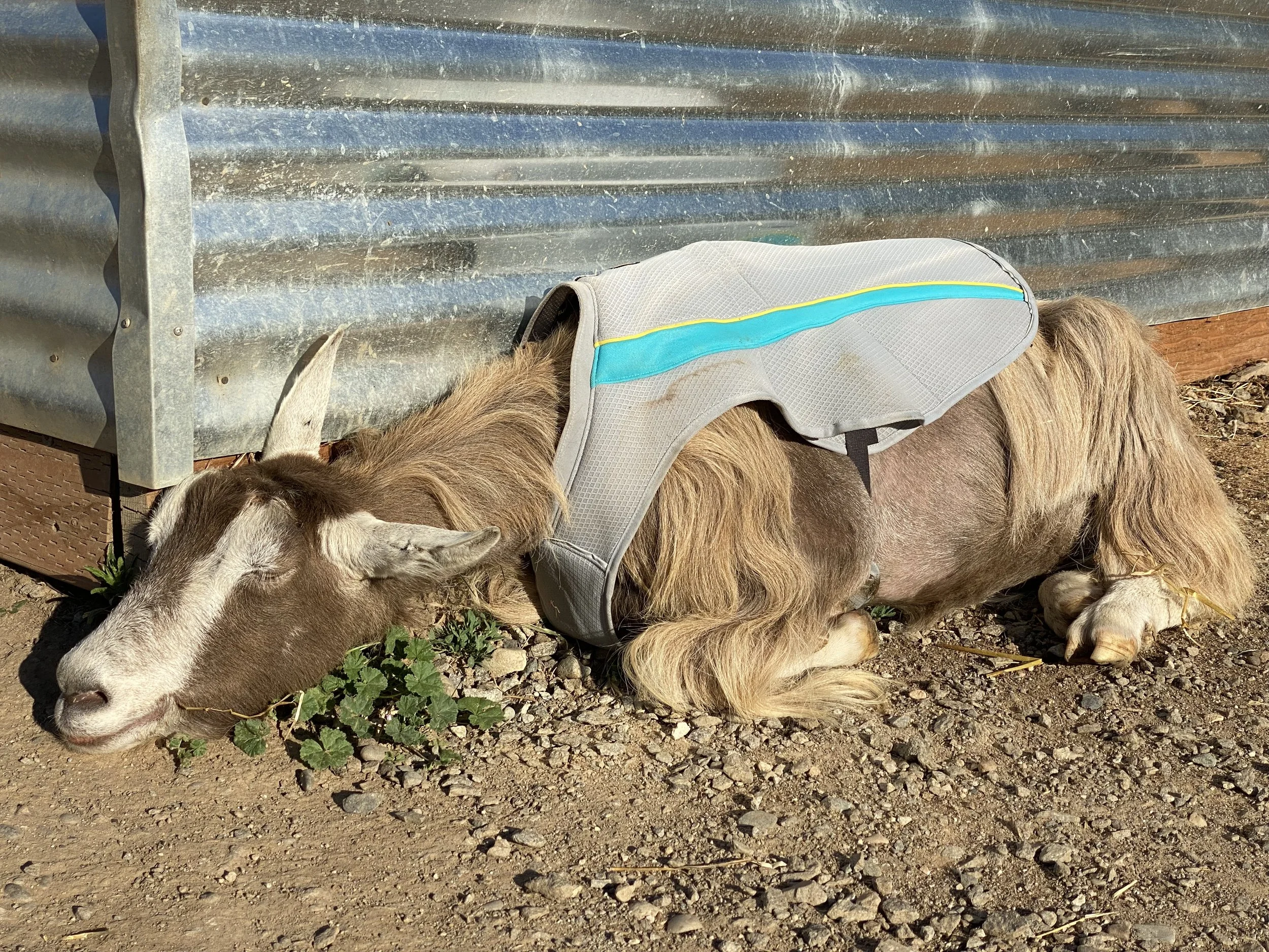 Tulips was comfortable and clearly happy to be home. The boys were so excited to see her and chose not to leave her side. She enjoyed free grazing on her own time early morning and night and midday we kept her cool in her barn with a big fan, cooling wet coat, frozen treats, and clean cold water. The hot afternoons were definitely hard on her. She loved to lay in the sun more than anything, but she was now having trouble regulating her body temperature, so she would soon overheat laying in the sun and make it more difficult to breathe. It was obvious Tulips was sick, but she had a strong spirit and a strong will to live. She still loved to be cuddled more than ever.