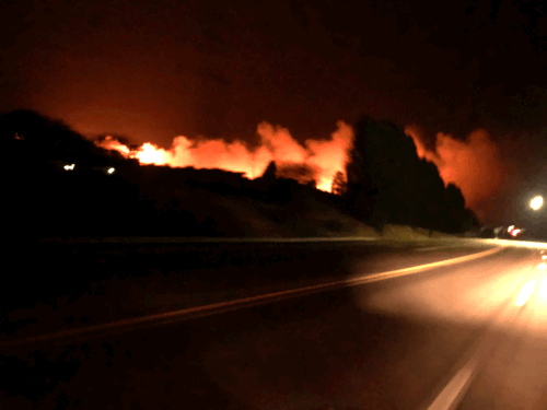 Feeling a slight amount of relief as the sky started to brighten with sunlight. The fire intensified overnight and spread closer to us, but the favoring winds prevented it from spreading into our canyon and the winds continued to blow in our favor.