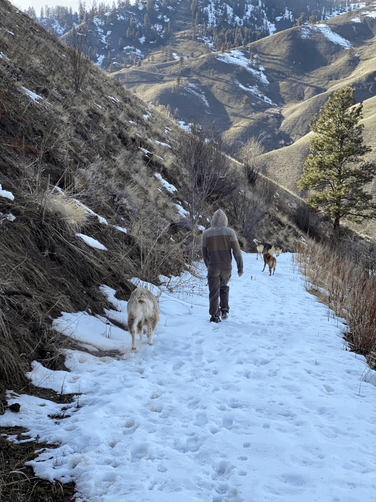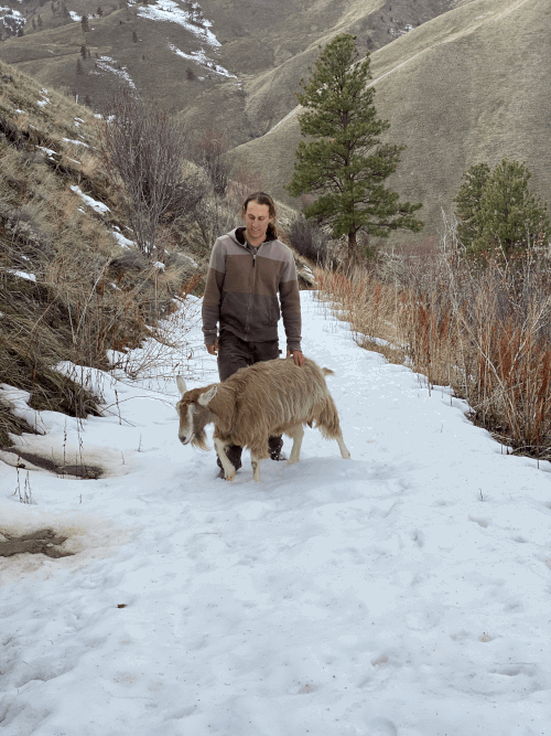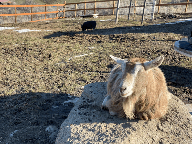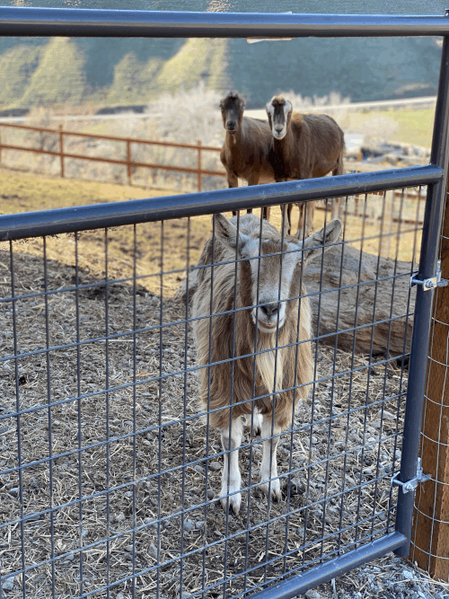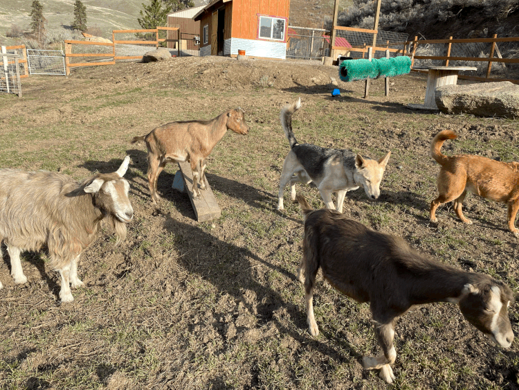 With the passing of Chino, we knew even though we were not quite ready to move forward, it was extremely important for us to find Tulips some new companions. As one of our volunteers reminded me, “You aren’t replacing Chino, if you never forget about him.” Goats are herd animals and by nature enjoy being in groups with other goats. Though, it seems Tulips enjoyed all the time we spent with her in the meantime. Enjoying getting to know her even better being one-on-one with her. She would hang out with the dogs and wander around outside her pasture in the mornings during cleaning time, she loved going on hikes with us and the dogs. She was even more well behaved then the dogs were the majority of the time. We thought she would be SO excited to have two new companions to romp around with….and we think she is, but maybe not as excited as we may have imagined.
